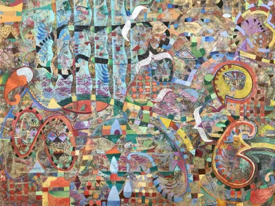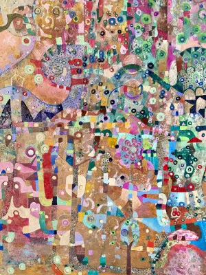 Alise Loebelsohn is an artist whose work is shaped by her professional experience. A Pratt Institute BFA graduate, she also studied in France and at the Art Students League in NYC. Early in her career, she painted murals in large institutions and industrial spaces, learning the importance of scale. Her first major project was a 132-foot mural on the Coney Island boardwalk. She later worked on Richard Haas’s large outdoor murals and stenciled the Old Executive Office Building at the White House. For 19 years, she painted NYC billboards as a member of the Sign Painters union. In 2000, Alise founded Pompeii Studios LLC, creating decorative art for commercial spaces, private homes, and landmarks like Bryant Park and the New York Public Library. She has exhibited her work nationally and internationally, including at The Other Art Fair and the Walter Wickiser Gallery. Alise lives in Brooklyn with her husband and two sons.