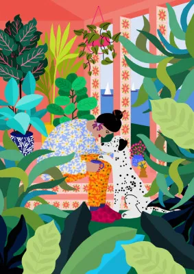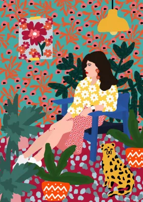 Rafaela Mascaro is a celebrated designer from São Paulo, Brazil, known for her powerful illustrations that feature natural and botanical elements. Her work seamlessly weaves women's stories into the landscape, merging human forms with organic surroundings in an evocative manner. In Mascaro's art, nature serves as |a storytelling partner, enhancing themes of femininity, resilience, and harmony. The intertwining vines, leaves, and flowers suggest a mythic unity between women and nature. Through her refined style, Mascaro invites audiences to reflect on women's narratives while celebrating the beauty of the natural world.